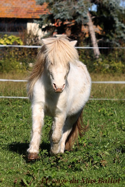 Il transmettra systématique un gène crême au poulain ainsi que son gène pie (une fois sur deux).