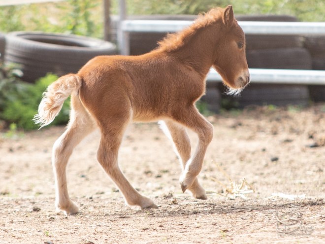 Jhall, de robe alezan rouan, a vu le jour le 27 avril 2019. Il toise 59cm à la naissance et sera de taille grande intermédiaire ou petit standard.