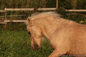 Une chance sur 2 de transmettre son gène crème (donc poulain isabelle, palomino ou smoky black). La robe du poulain dépendra de votre jument, n’hésitez pas à me contacter pour plus d’informations.