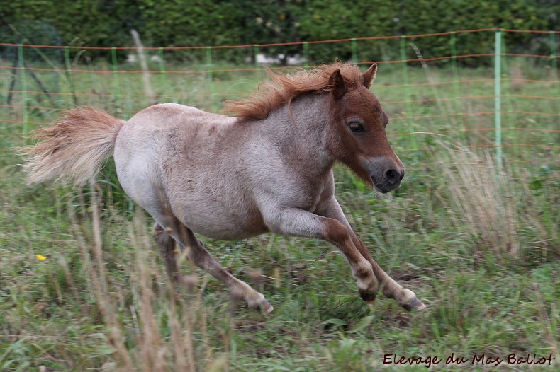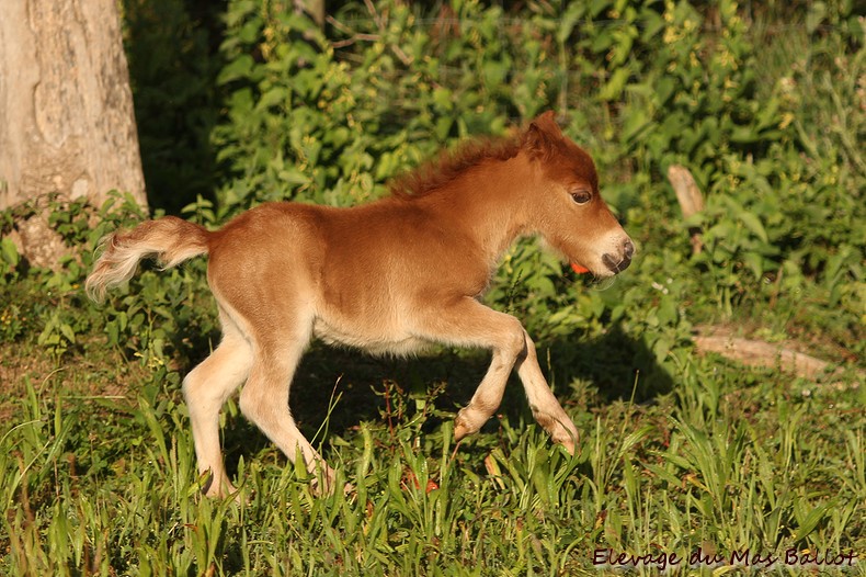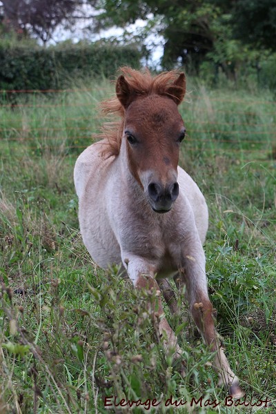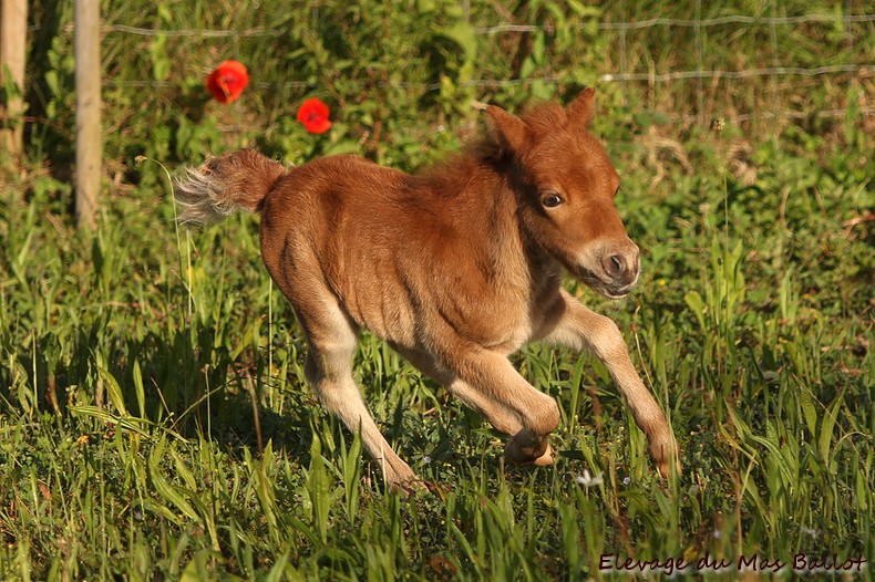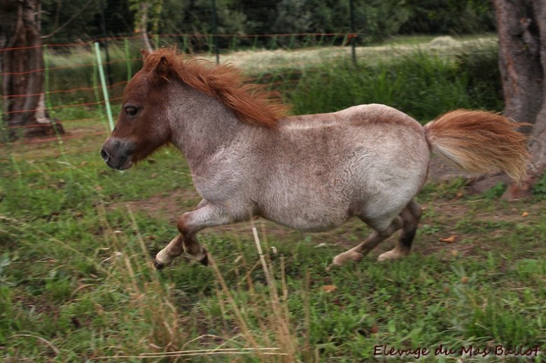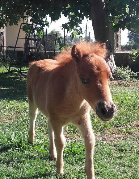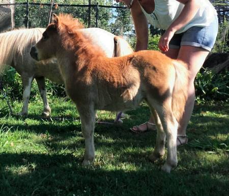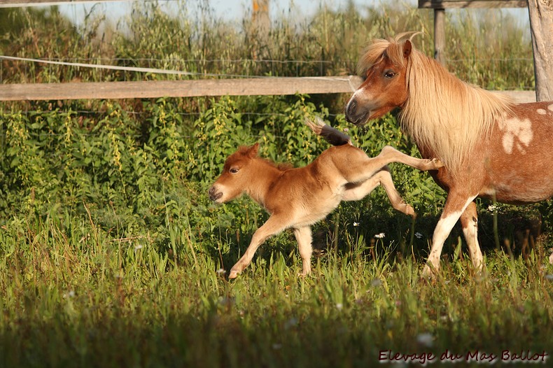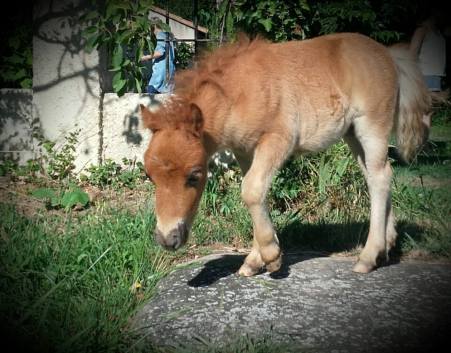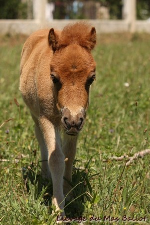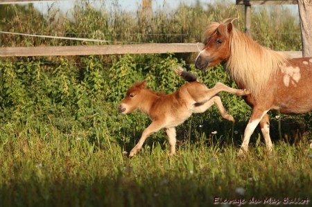 Pouliche PP shetland par Patchouli de Bavas et Diablotin du Colombier. Née le 20 mai 2017, toisera environ 90cm.