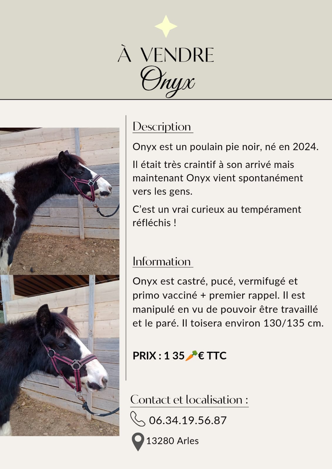 Onyx A VENDRE 1350€ TTC Né en 2024 Partager : Cliquer pour partager sur X(ouvre dans une nouvelle fenêtre) X Cliquez pour partager sur Facebook(ouvre dans une nouvelle fenêtre) Facebook J’aime chargement…