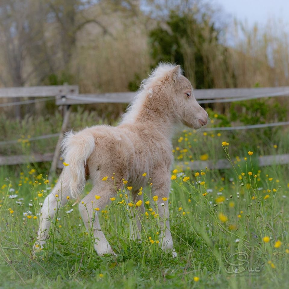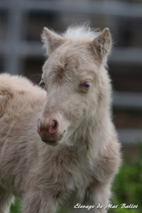 A priori cremello malgré sa teinte très « sombre ». Une jolie pépette qui sera de taille grande mini.